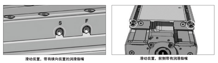 滑塊裝置還包含易于接近的服務點,用于潤滑導向系統(tǒng)和驅(qū)動元件(如下圖)。