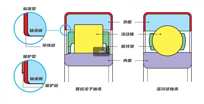 軸承一般都是由鋼鐵制成的,鋼鐵具有良好的導電性,平常情況下,一塊鐵通電并沒有什么,但一旦這塊鐵通電時附有摩擦,有壓力,便會產生火花,火花的熱效應會導致該問題區域的冶金成分和硬度與周圍正常區域的冶金成分和硬度不同,從而形成白色層、硬化層和回火層,問題區域最終可能會出現剝落,這就是所謂的電蝕,因此在電機和發電機等電氣設備中,往往會因為漏電,而對軸承產生損傷,為應對這種情況,