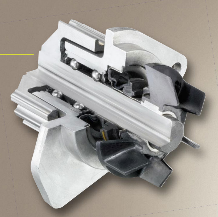 其內(nèi)部旋轉(zhuǎn)依賴軸承,根據(jù)負(fù)載不同,通常采用雙列滾珠軸承,若雙列滾珠軸承不能滿足承載力要求,則可使用單列滾珠軸承+單列圓柱滾子軸承,由圓柱滾子軸承提供額外的負(fù)載。