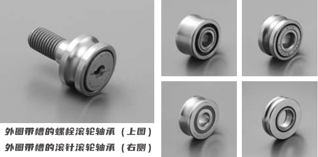 在一些應用中,經常會用到外圈帶凹槽的滾輪軸承,但由于其長相(如上圖所示),這類軸承又經常被稱為滑輪,這種類型的軸承經常用作導輥,外圈的外表面有凹槽,有U形槽及V形槽兩種,以符合其配合面的形狀,安裝流程與標準軸承相同。
