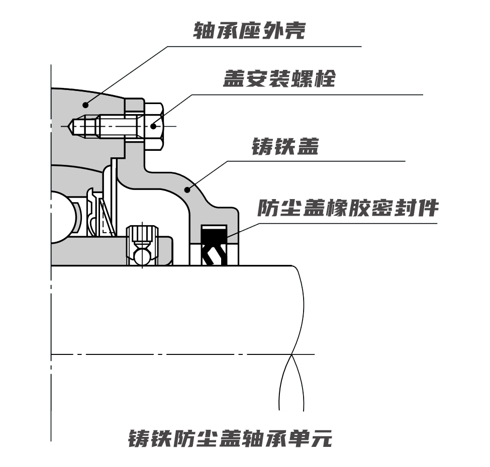 需要注意的是,當軸承單元在易受水飛濺而非灰塵影響的位置使用時,在蓋的下側提供一個排水孔(5至8 mm),并在滾珠軸承側面涂抹潤滑脂,而不是在蓋中加注潤滑脂。