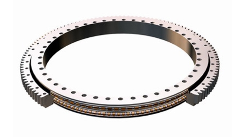 八、單列四點接觸球回轉支承(Q系列)軸承。單列四點接觸球回轉支承軸承由兩個座圈組成,結構緊湊,重量輕,鋼球和圓形滾道有四個角,可以同時承受軸向力、傾覆力矩和大軸向力,廣泛應用于旋轉輸送機、焊接操作機、中小型超重機器和挖掘機中。