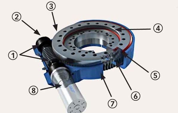 太陽能軸承 CRSD 290(如上圖所示)專為太陽跟蹤應用而設計,覆蓋范圍廣泛的面板尺寸,從約20至70平方米,根據跟蹤器設計和風力條件,可高達90平方米,CRSD 290是一種旋轉驅動裝置,由預緊的主軸承、齒輪組和殼體組成,裝配過程中的預緊提供了最小的齒隙跟蹤,蝸輪組設計為具有自鎖功能,使其能夠在無外部制動器的情況下保持靜態扭矩,此外,為齒輪組選擇的材料與適當的熱處理相結合,可提供高扭矩承載能力和有限的磨損,延長產品壽命。