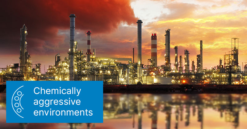 在所有三個(gè)階段中,機(jī)器和軸承的使用條件都具有非常強(qiáng)的化學(xué)侵蝕性,腐蝕成為影響機(jī)器耐用性的主要原因之一。上述化學(xué)環(huán)境包括酸、堿、有機(jī)溶劑,選擇合適的材料可以改變軸承的壽命,一些陶瓷和塑料材料通常比鋼更能抵抗這些侵蝕性化學(xué)品。需要注意的是,混合軸承雖然比純鋼軸承有優(yōu)勢(shì),但也有鋼部件(如環(huán))易受腐蝕的缺點(diǎn),因此,使用全陶瓷軸承,通過必要的潤(rùn)滑、保持架和尺寸選擇,才能提供最高的耐腐蝕性。