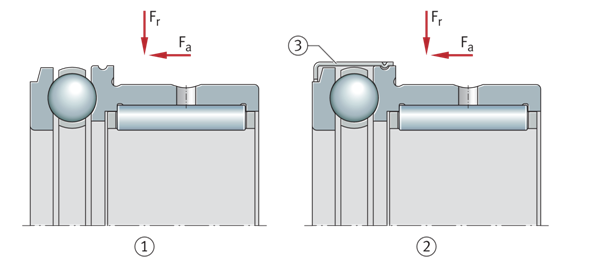 使用NX和NX-Z型,擋圈插入軸承外圈的軸承槽中,插入槽中的卡環(huán)是將軸承軸向定位在殼體中的一種特別緊湊且具有成本效益的方式。