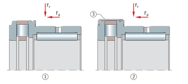 這些軸承在一個方向上的軸向定位可以通過帶有集成殼體定位墊圈的滾針軸承實現(xiàn)。