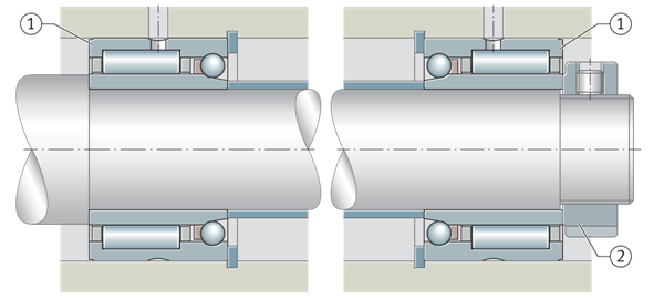 兩個滾針/角接觸球軸承NKIA,以對稱方式安裝 ①滾針/角接觸球軸承NKIA ②預(yù)緊軸螺母 | ![]() |