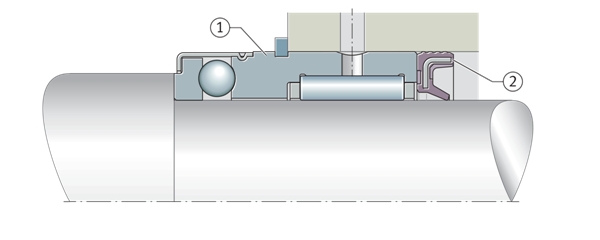 相鄰結(jié)構(gòu)中軸承位置的密封——示例 ①滾針/軸向深溝球軸承NX-Z ②使用旋轉(zhuǎn)軸密封G密封軸承 | ![]() |