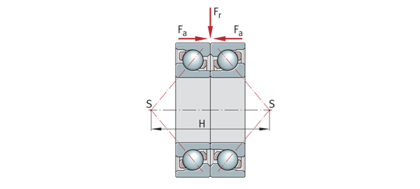 在串聯布置中,接觸線彼此平行地延伸。軸向力均勻分布在兩個軸承上,但只能由軸承組從一個方向支撐。為了支撐來自相反方向的軸向力以及組合載荷,軸承組總是針對另一個軸承進行調整。