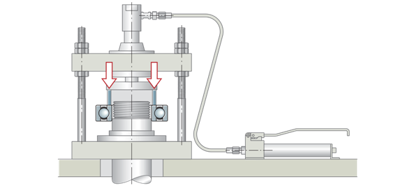 在液壓安裝方法中,油被壓在緊密軸承配合的座面之間,這會使軸承套圈輕微膨脹,流體膜消除了配件之間的接觸,使其可以在幾乎不施力的情況下移動,并且沒有表面損壞的風險。