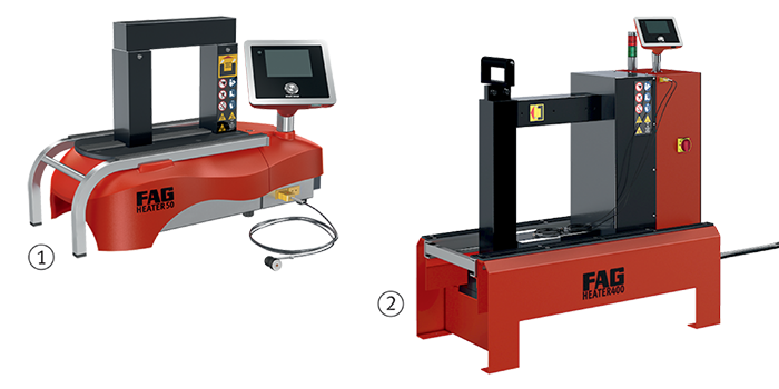 用于安裝完整滾動軸承的感應加熱裝置 ①孔徑為10 mm及以上軸承的臺面裝置 ②獨立設備,適用于質量高達400 kg的軸承 | ![]() |