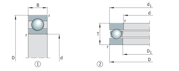 主要尺寸 ①深溝球軸承(徑向軸承) ②軸向深溝球軸承(軸向軸承) | ![]() |