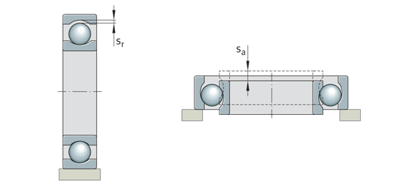 軸向內(nèi)部間隙與徑向內(nèi)部間隙的比較 Sa=軸向內(nèi)部間隙 Sr=徑向內(nèi)部間隙 | ![]() |