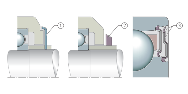 在潤滑脂潤滑軸承的情況下,可以通過使用簡單的擋板來防止固定軸承套圈上的潤滑脂流出。根據安裝和操作位置,板在其外緣或內緣進行支撐,在密封間隙處形成的潤滑脂套環提供保護,防止受到來自外部的輕微污染影響。