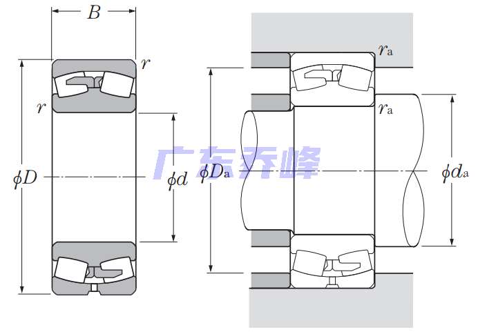 | 調心滾子軸承 - 圓柱孔,239系列 - 尺寸 | |