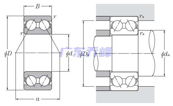 | 雙列角接觸球軸承 - 開式 - 尺寸 | |