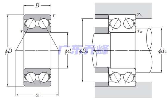 | 雙列角接觸球軸承 - 開式,5200&5300系列 - 尺寸 | |