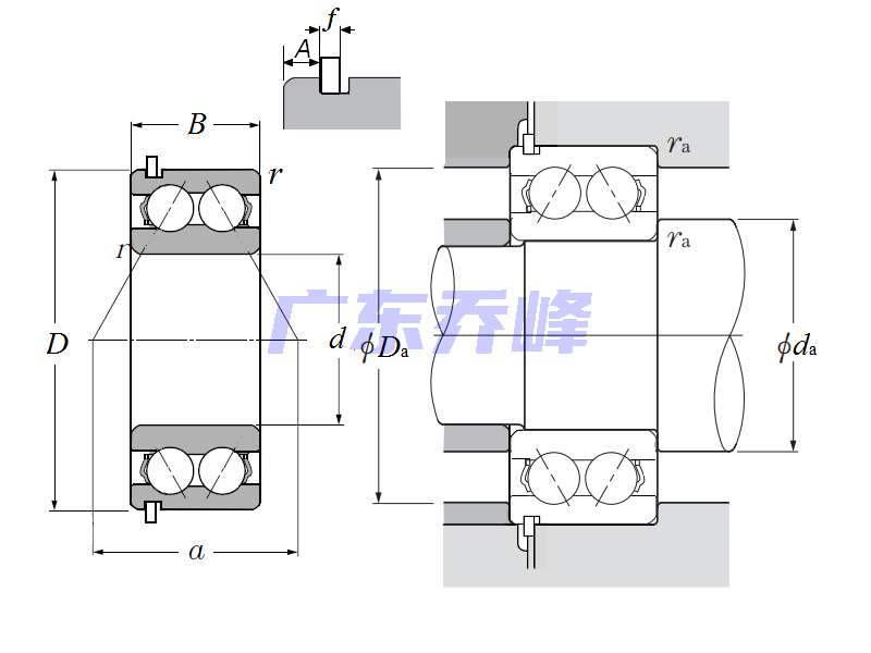 | 雙列角接觸球軸承 - 開式帶止動環 - 尺寸 | |