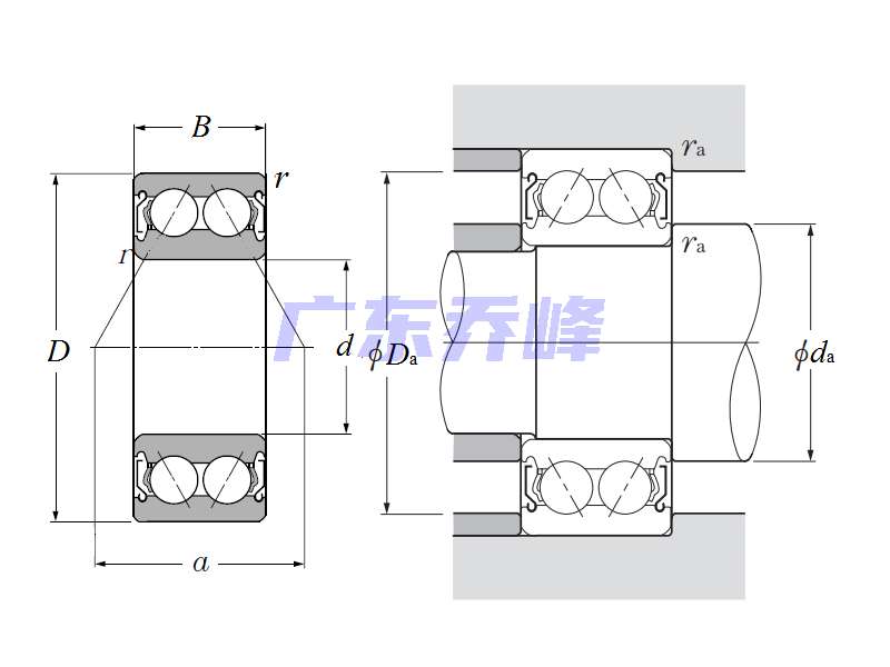 | 雙列角接觸球軸承 - 雙面防塵蓋 - 尺寸 | |