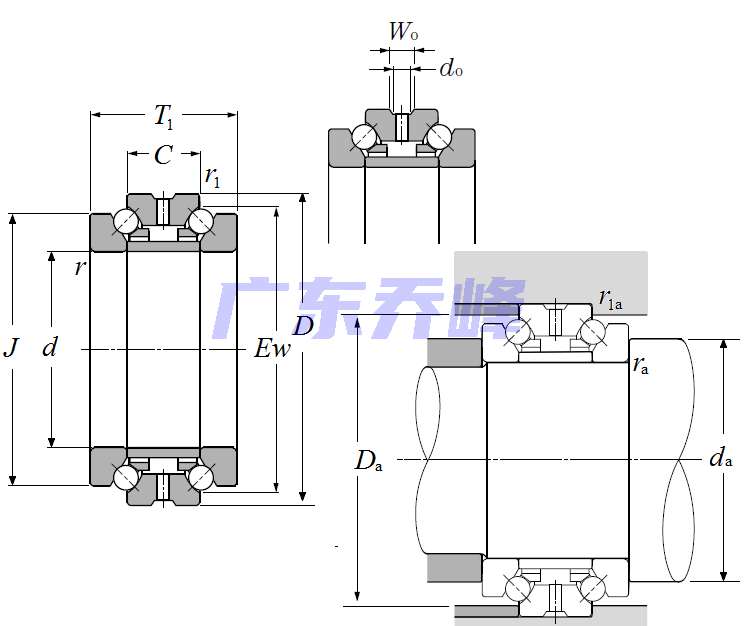 | 雙向推力角接觸球軸承 - 尺寸 | |