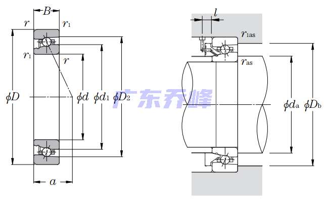 環保型角接觸球軸承 - HSFL型 - 尺寸