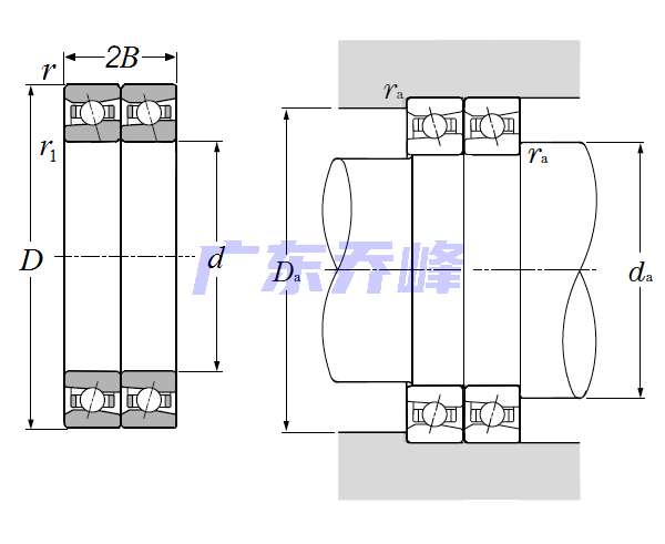 | 超高速雙聯角接觸球軸承,串聯配對 - 尺寸 | |