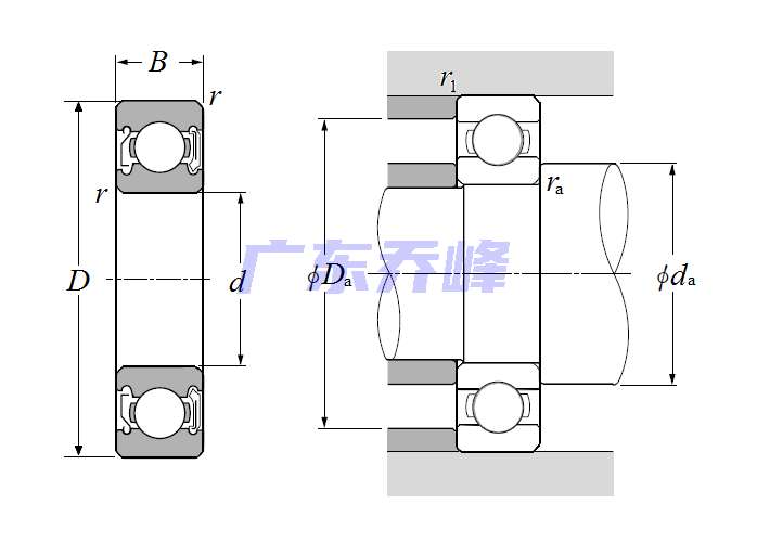 | 單列深溝球軸承 - 單面防塵蓋&單面密封(非接觸式橡膠密封) - 尺寸 | |