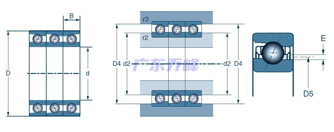 | 三列角接觸球軸承,機床用,Q16系列 - 尺寸 | |