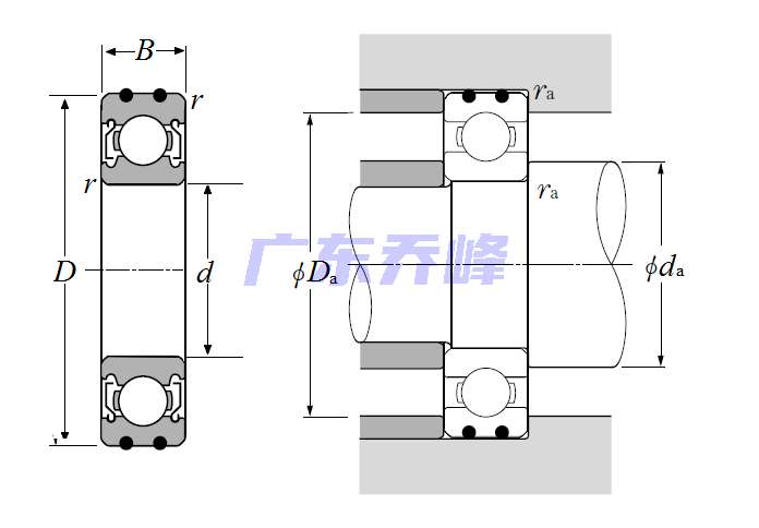 | AC軸承 - 雙面防塵蓋 - 尺寸 | |