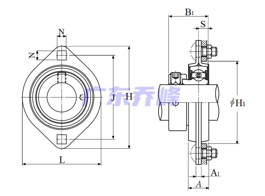 軸承型號:AELPFL206-104,雙螺栓菱形法蘭式軸承座單元,沖壓鋼外殼,帶偏心鎖緊套,AELPFL型