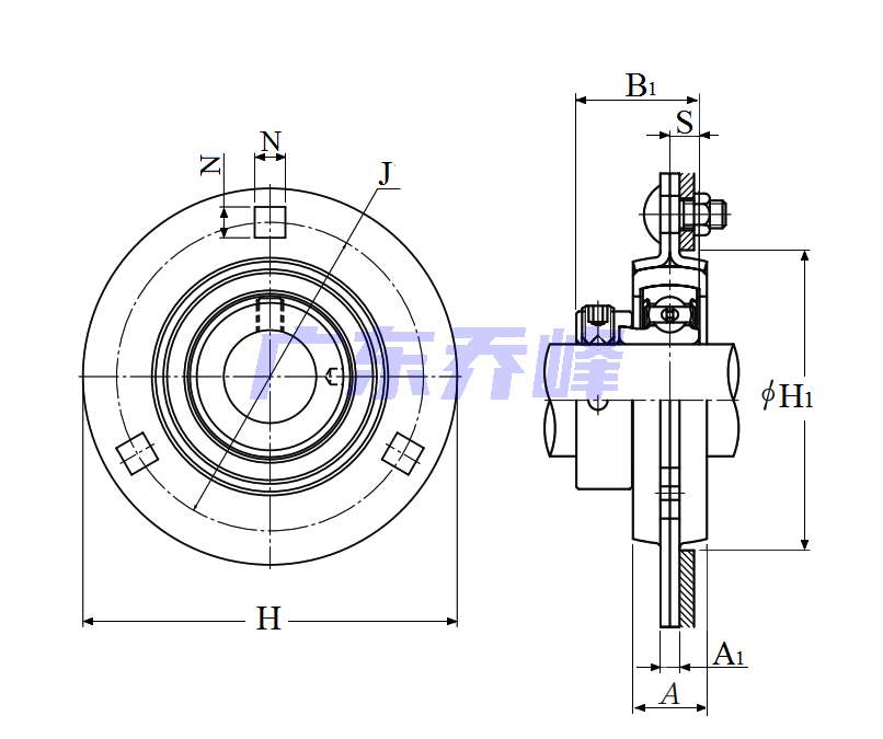 AELPF207-104 詳細尺寸,d:31.750mm,h:122.00000mm,c:5.200mm,b:20.000mm,j:100.000mm