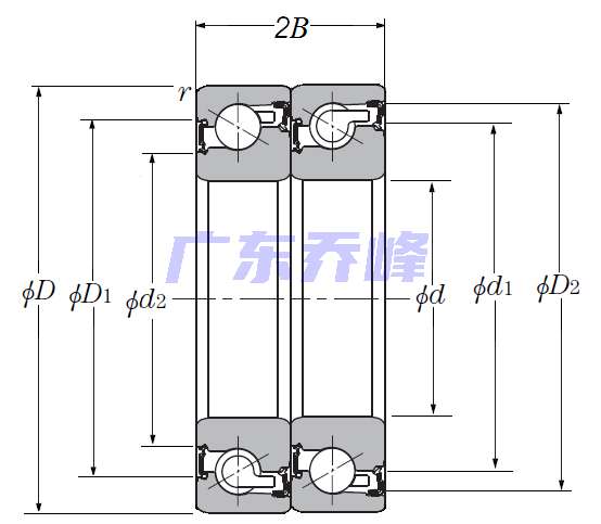| 滾珠絲杠用雙角接觸推力球軸承 - 串聯配對,雙面密封,一排承受軸向載荷 - 尺寸 | |