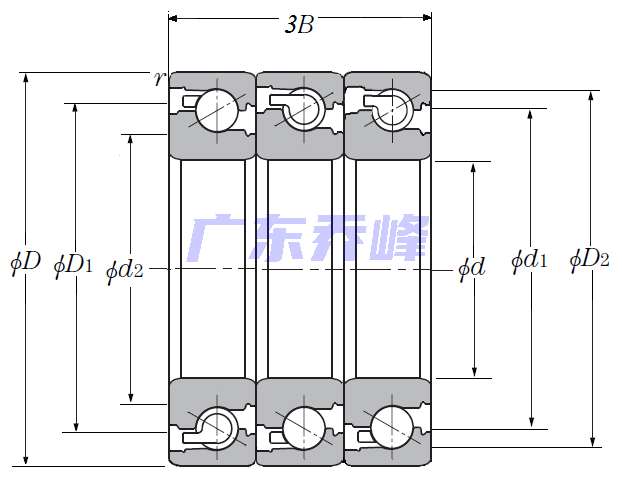 | 滾珠絲杠用三列推力角接觸球軸承 - DTT配對,開式,三排承受軸向載荷 - 尺寸 | |