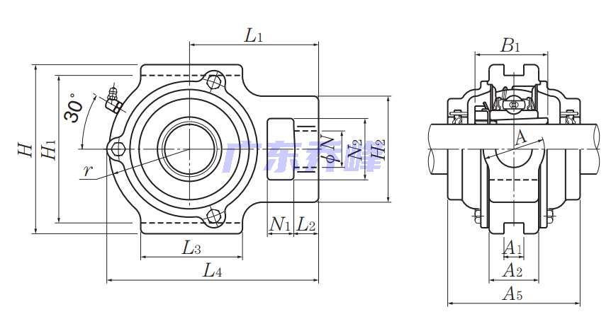 | 滑塊式軸承座,鑄造外殼,帶緊定襯套,鑄造防塵蓋,開(kāi)式端蓋,UKT型 - 尺寸 | |