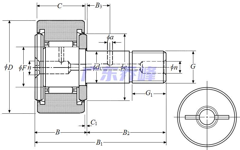 | 凸輪從動螺柱式滾輪軸承 - 圓柱內徑,CR..LL型 - 尺寸 | |
