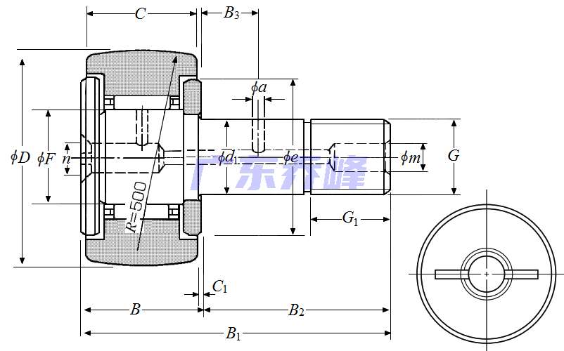 | 凸輪從動螺柱式滾輪軸承 - 球面外圈,CR型 - 尺寸 | |