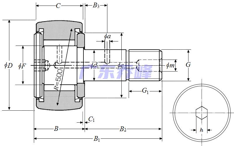 | 凸輪從動(dòng)螺柱式滾輪軸承 - 球面外圈,CRV..LLH型 - 尺寸 | |