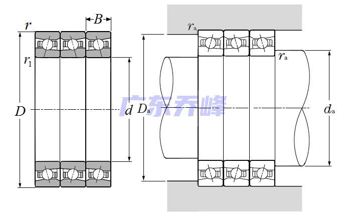 | 超高速多列角接觸球軸承,背對背配對 - 尺寸 | |