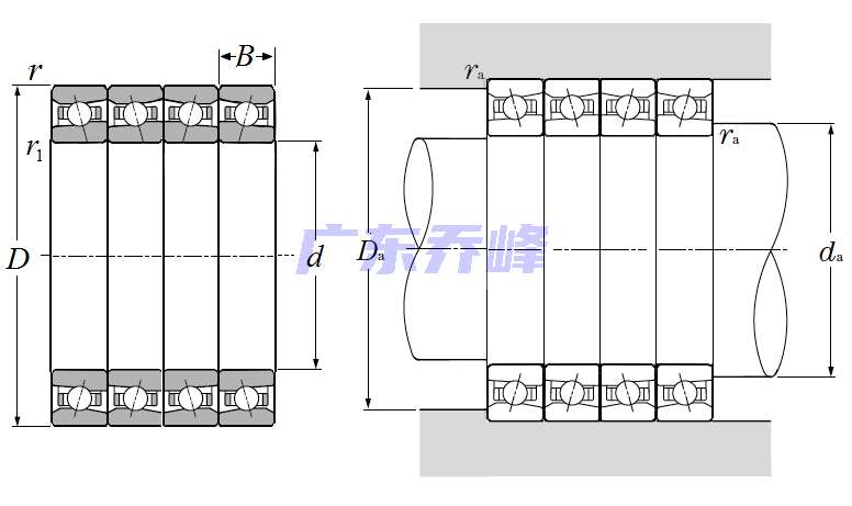| 超高速多列角接觸球軸承,串聯配對 - 尺寸 | |