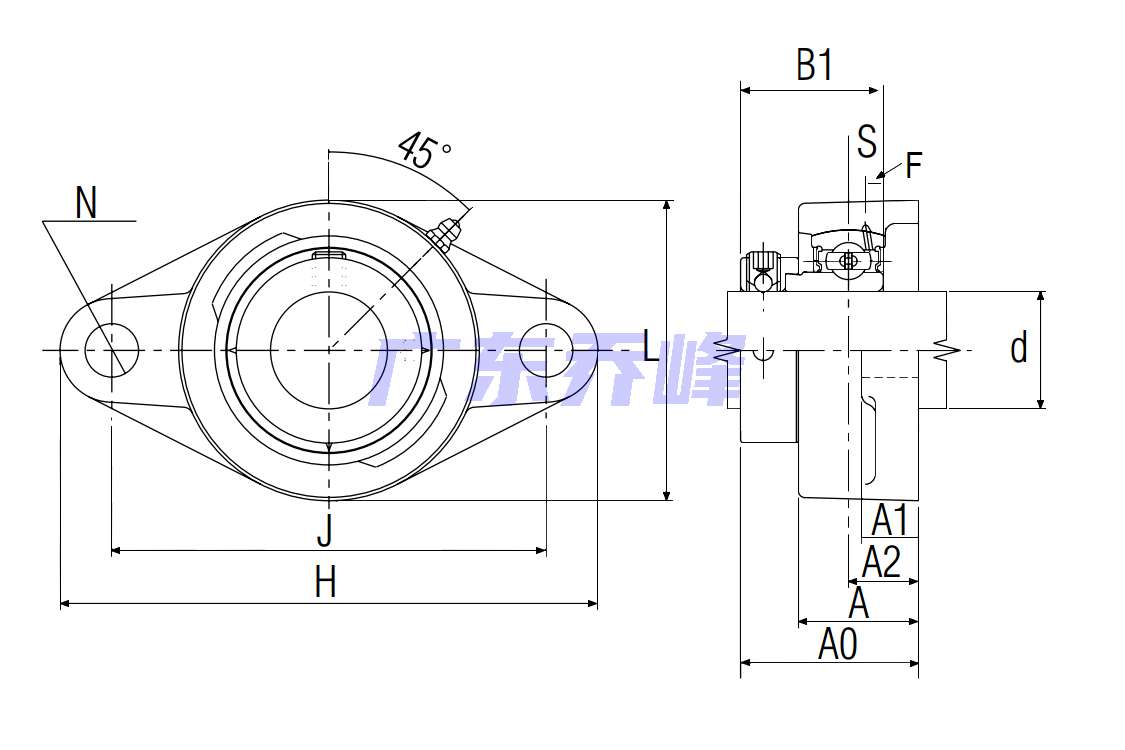 軸承型號:JELFLU-2,超一流雙螺栓法蘭式軸承座 - 帶偏心鎖緊套,JELFLU型