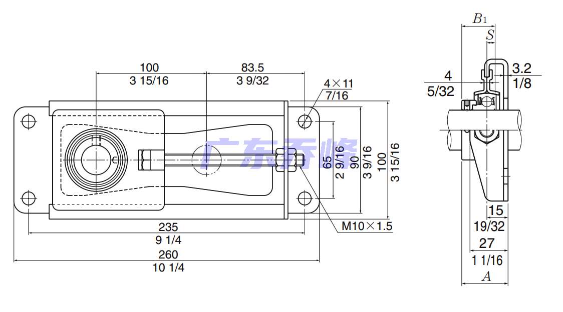 | AELPT205-100-10 | 詳細尺寸,d:25.400mm,b:38.500mm |