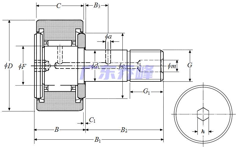 軸承型號:KR40XLLH,凸輪從動螺柱式滾輪軸承 - 圓柱內徑,KR..LLH型
