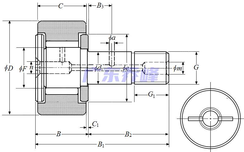 | 凸輪從動螺柱式滾輪軸承 - 圓柱內徑,KRV型 - 尺寸 | |