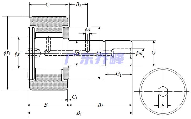 | 凸輪從動螺柱式滾輪軸承 - 圓柱內(nèi)徑,KRV..H型 - 尺寸 | |