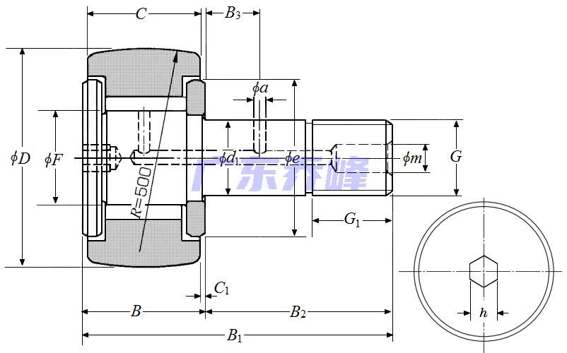 | 凸輪從動(dòng)螺柱式滾輪軸承 - 球面外圈,KRV..H型 - 尺寸 | |