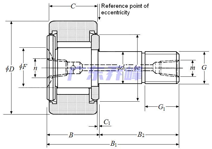 | 凸輪從動螺柱式滾輪軸承 - 圓柱內徑,KRVU..LL型 - 尺寸 | |