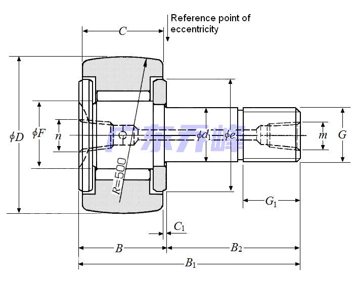 | 凸輪從動螺柱式滾輪軸承 - 球面外圈,KRVU型 - 尺寸 | |