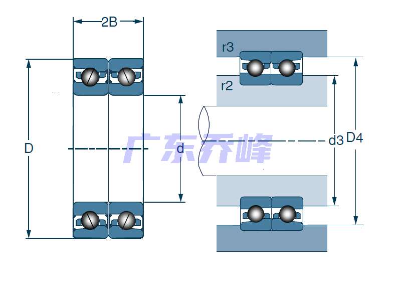 | 密封雙聯角接觸球軸承,高精度 - 尺寸 | |