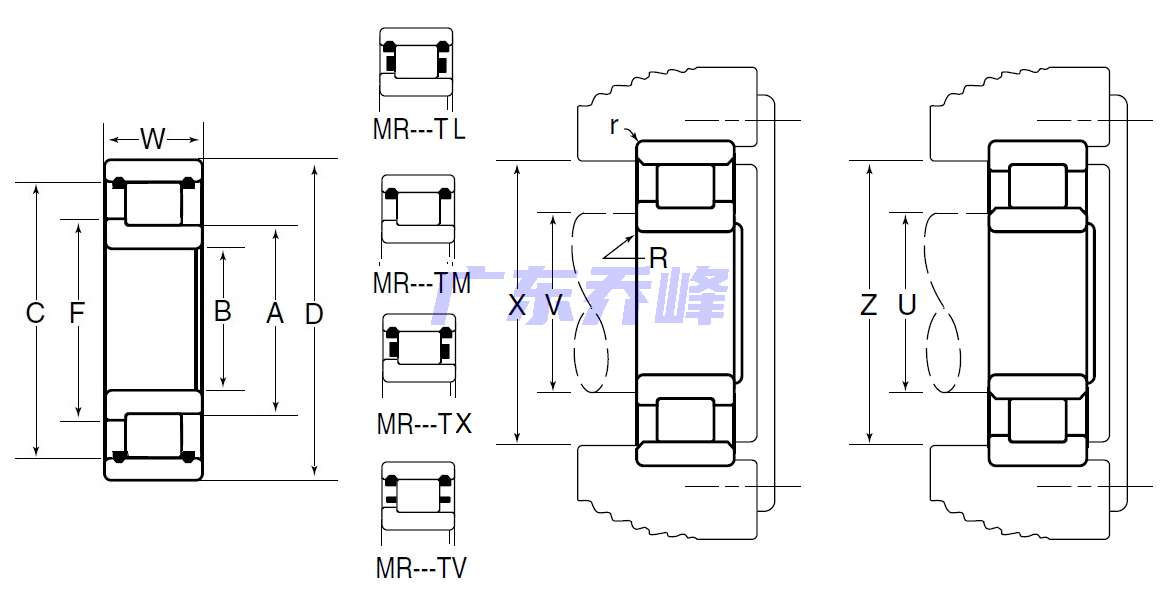 MR:M:NTN BOWER產品,標準公制尺寸系列,R:內圈單擋邊