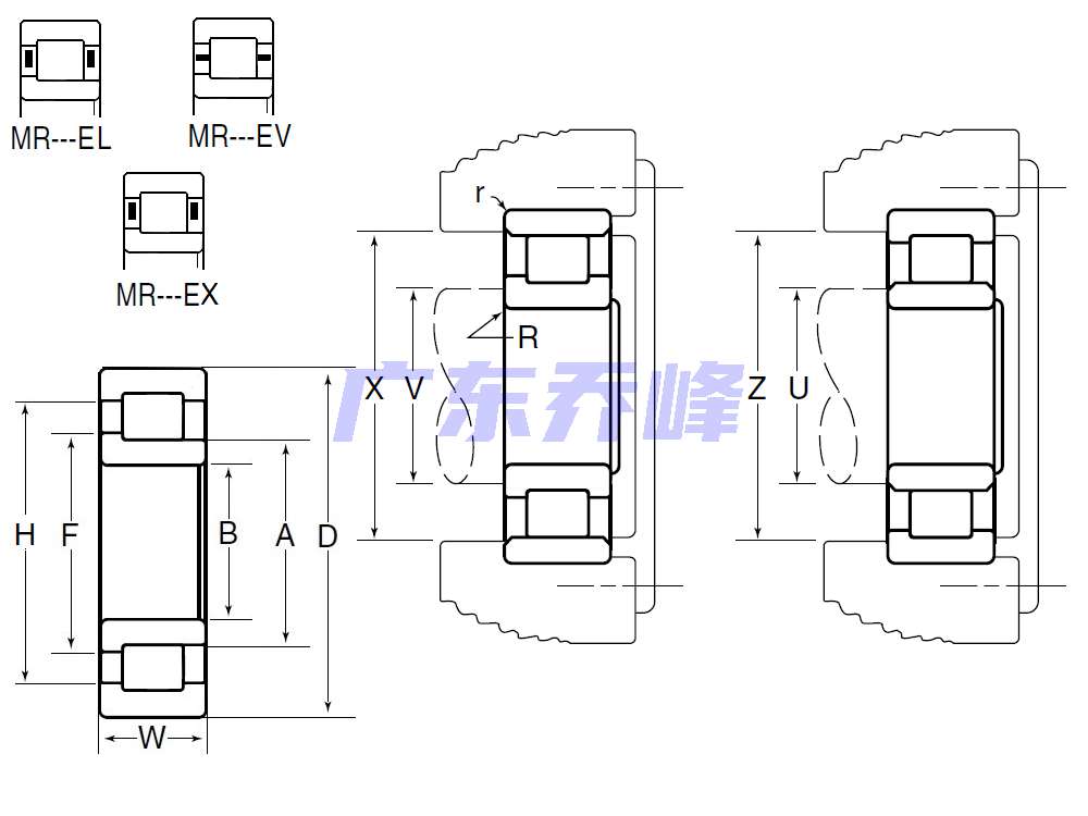 MR:M:NTN BOWER產品,標準公制尺寸系列,R:內圈單擋邊
